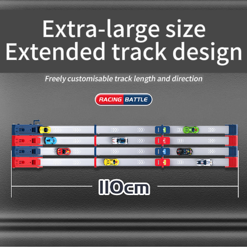 PRODLOUŽENÁ DRÁHA 110 CM – Extra dlouhá dráha poskytuje delší dráhu pro vysokorychlostní akci. To vytváří napínavější závody a umožňuje autům dosáhnout maximální rychlosti pro vzrušující fotofiniš pokaždé.