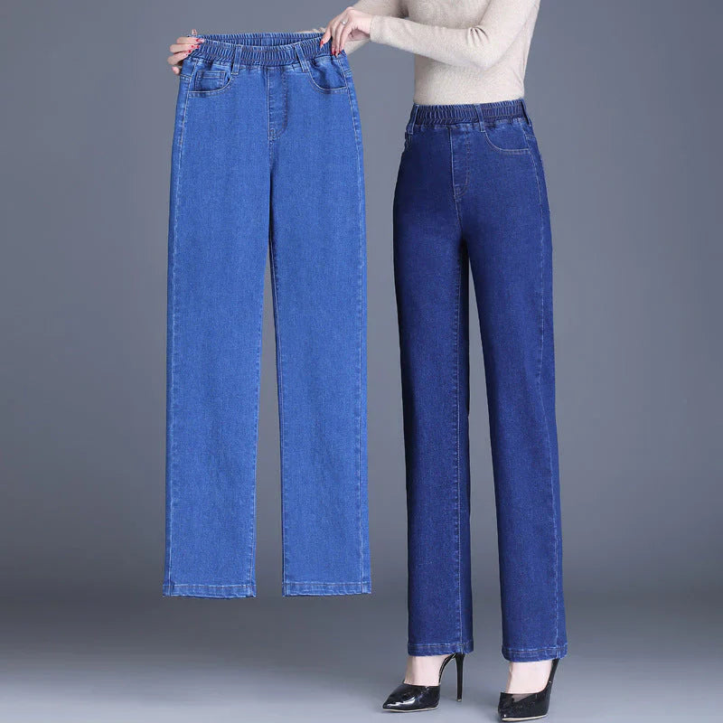 Tyto džíny jsou vyrobeny z vysoce kvalitní džínové tkaniny a mají klasickou rovnou siluetu, která sluší všem typům postavy. Elastický pas poskytuje pohodlné a pružné nošení, které vám umožní volný pohyb po celý den. Ať už vyřizujete pochůzky, jdete na oběd s přáteli nebo jen tak odpočíváte doma, tyto univerzální džíny jsou základem šatníku, který se snadno kombinuje s jakýmkoli svrškem nebo obuví.