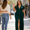 ELEGANTNÍ ZAPÍNÁNÍ NA KNOFLÍKY A ROZPAREK – Řada knoflíků po celé délce dodává nadčasový dekorativní nádech, zatímco rozparek vpředu zajišťuje volnost pohybu a při chůzi nabízí nenápadný, svůdný pohled na nohu.