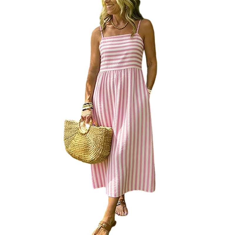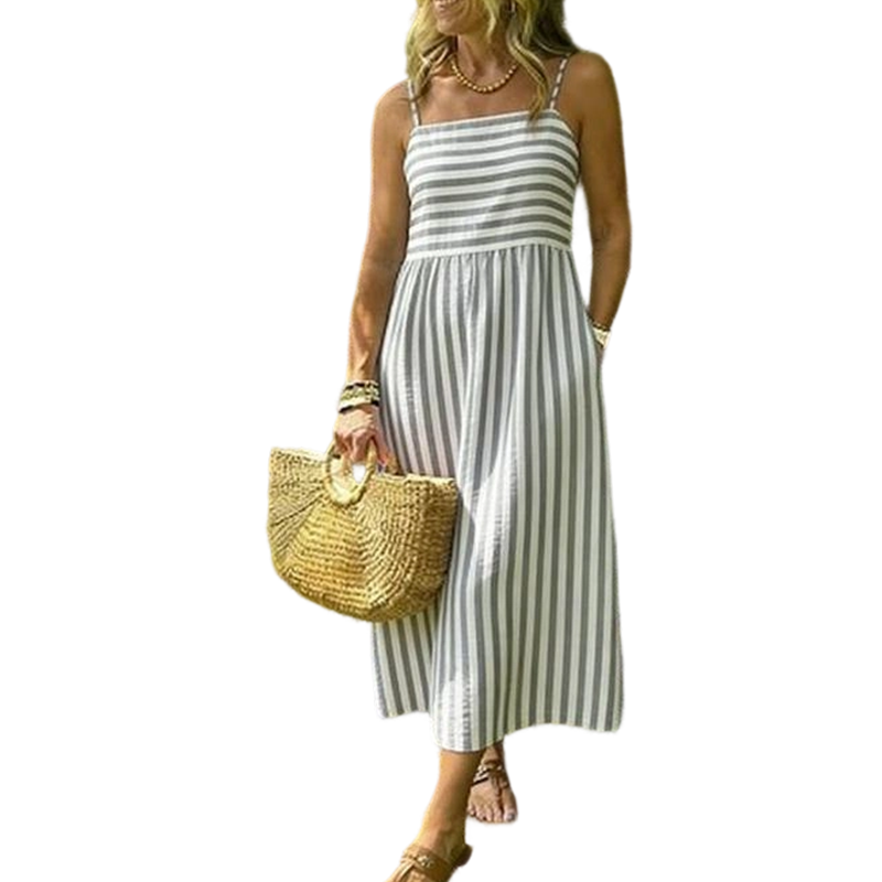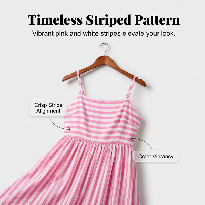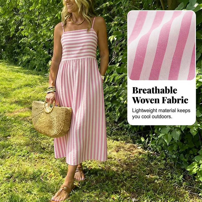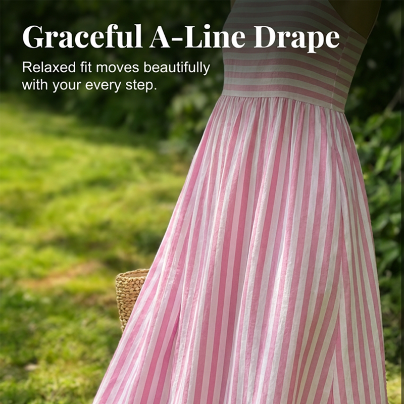 NADČASOVÝ PRUHOVANÝ VZOR- Představuje klasický vzor svislých pruhů, který vytváří zeštíhlující a prodlužující efekt. Tento nadčasový design zajišťuje, že šaty zůstanou univerzálním a módním základem vašeho šatníku i v nadcházejících sezónách.