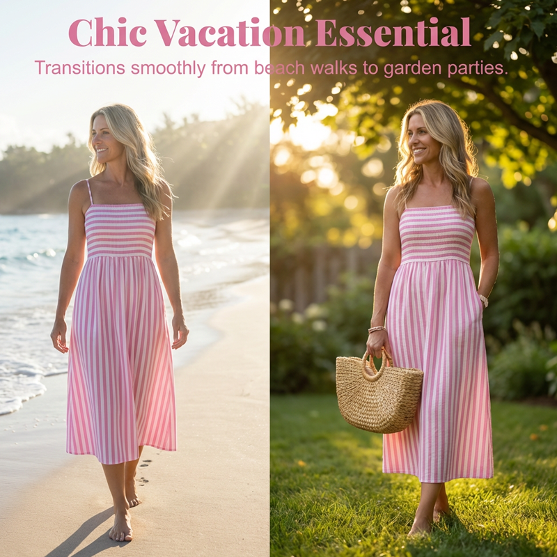 STYLOVÝ DESIGN RAMÍNEK – Šaty mají elegantní čtvercový výstřih s jemnými ramínky typu spaghetti. Tento střih krásně rámuje klíční kosti a ramena a nabízí lichotivý a elegantní vzhled, který je ideální pro teplé, slunečné dny a neformální výlety.
