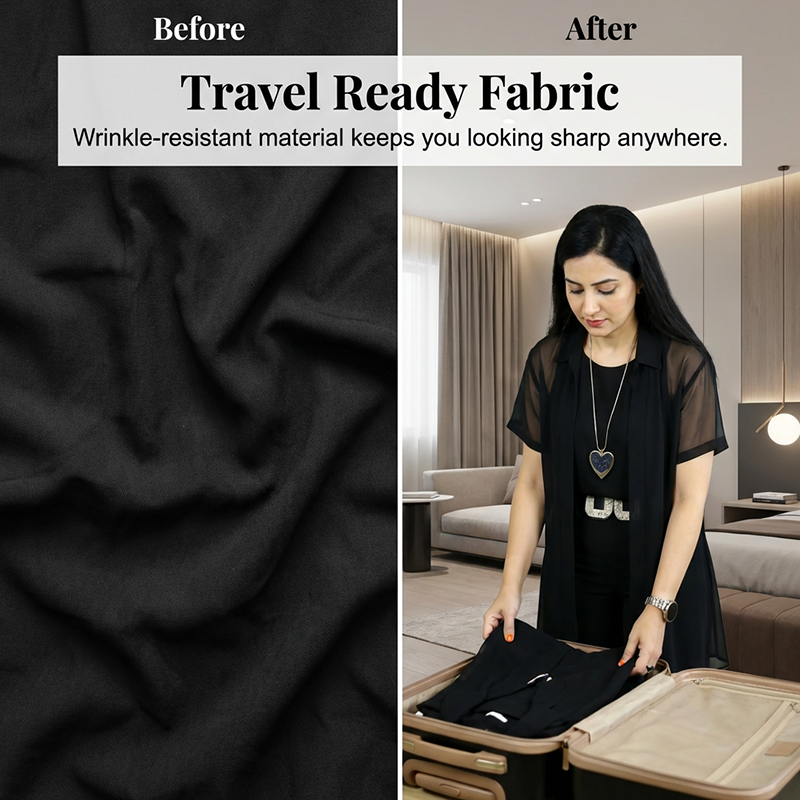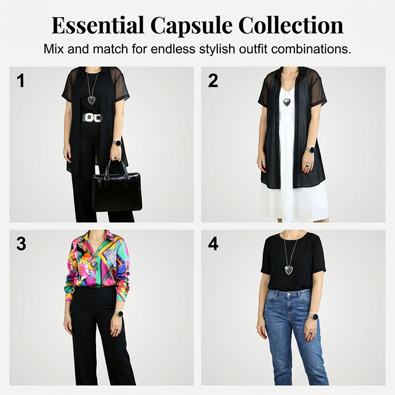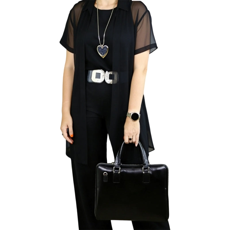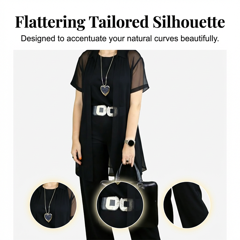 Kompletní třídílná sada – Obsahuje průsvitný kardigan, podvlékací vestu a ladící kalhoty, které vám hned po vybalení zajistí sladěný a elegantní vzhled a ušetří vám čas i námahu při sestavování outfitu.